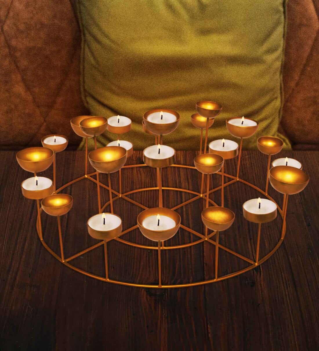 Give your tea lights a purpose with this exquisitely designed Tea light holder in Golden color in circular design. Perfect addition to your festive dcor and will make your home look chic