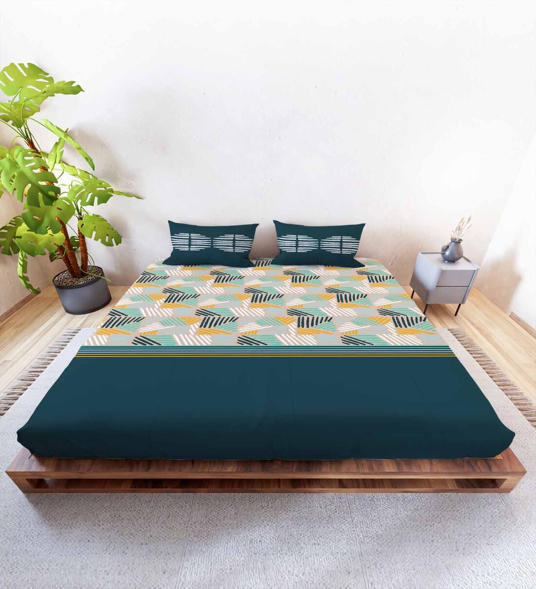 Teal Abstract 144 TC Cotton King Sized Double Bedsheet with 2 Pillow Covers Rushmoor SS23 Collection