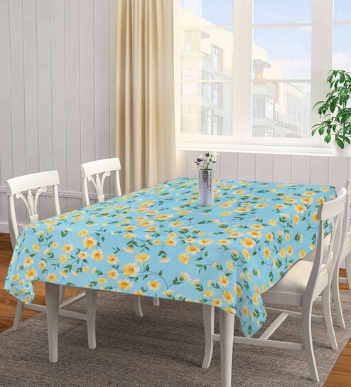 Arrabi Teal Floral Cotton Blend 6 SEATER Table Cover