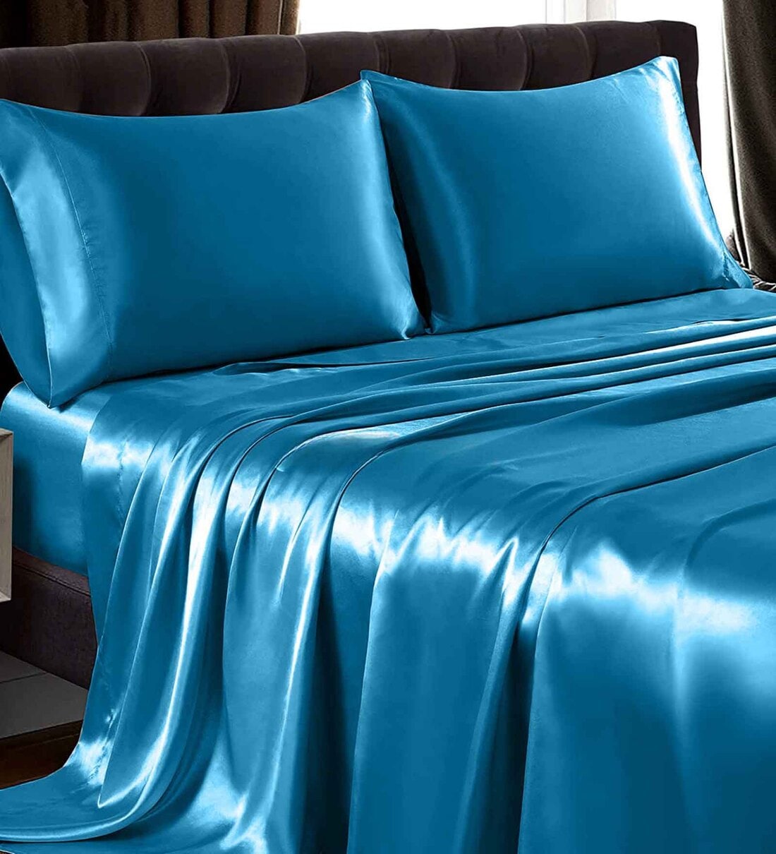 Teal Solid 400 TC Satin Queen Fitted Bedsheet with 2 Satin Pillow covers