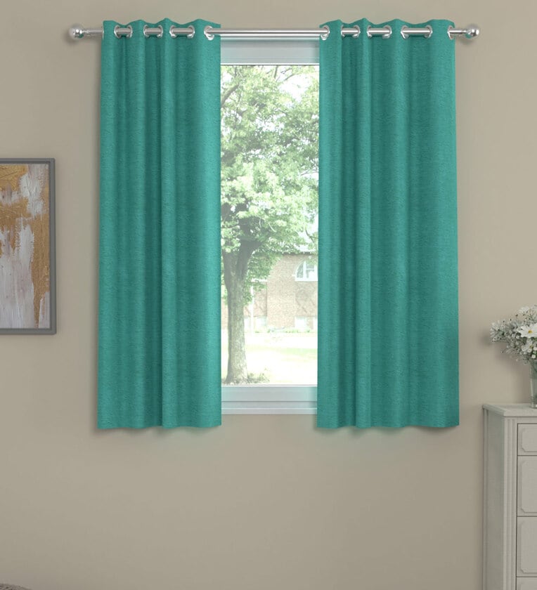 Teal Solid Polyester 5 Ft Semisheer Eyelet Window Curtains (Set of 2)