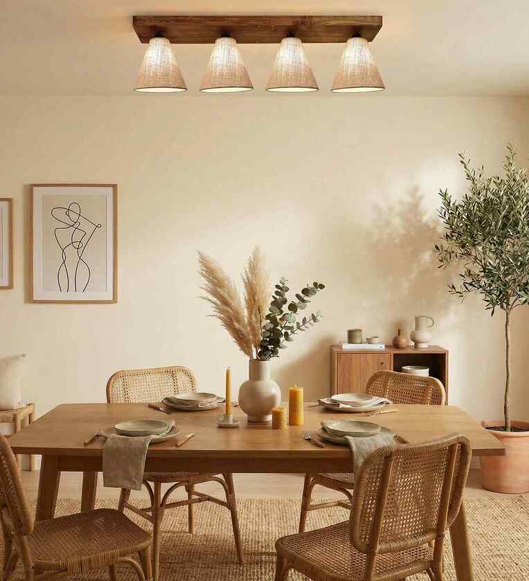Terzo 4 Lights Beige and Brown Solid Wood Flush Mounted Ceiling Light