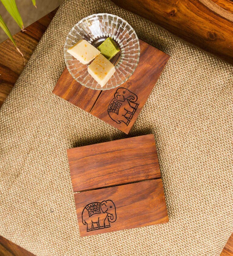 The Elephant Warriors Brown Sheesham Wood (Set of 2) Trivet
