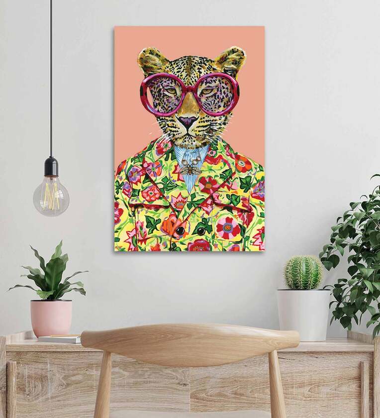 Tiger Multicolour Canvas Teakwood And MDF Framed Art Print