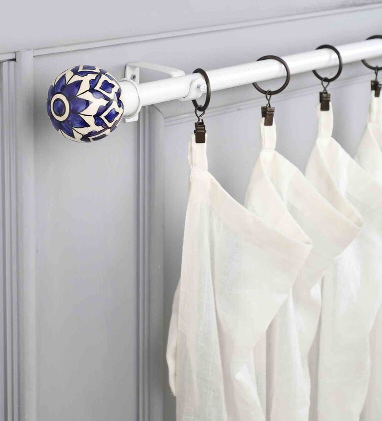 Timeless 19mm Iron Curtain Rod with White & Blue Ceramic Finial