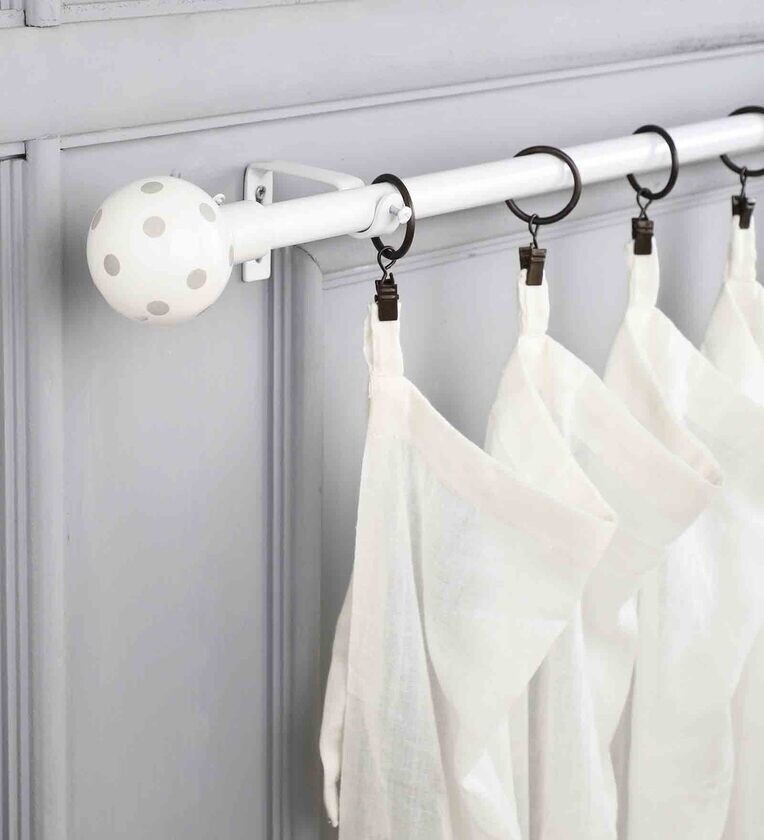 Timeless 19mm Iron Curtain Rod with White and Grey Polka Dot Finial