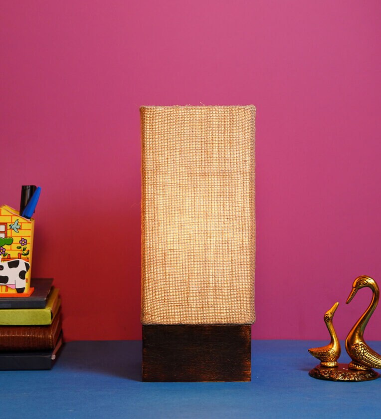 Titan Brown Natural Fiber Shade Table Lamp With Wood Base
