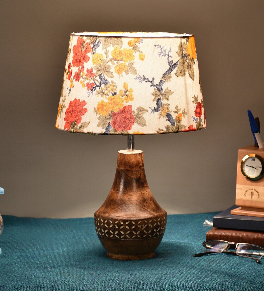 Tokyo Multicolour Fabric Shade Night Lamp With Wood Base
