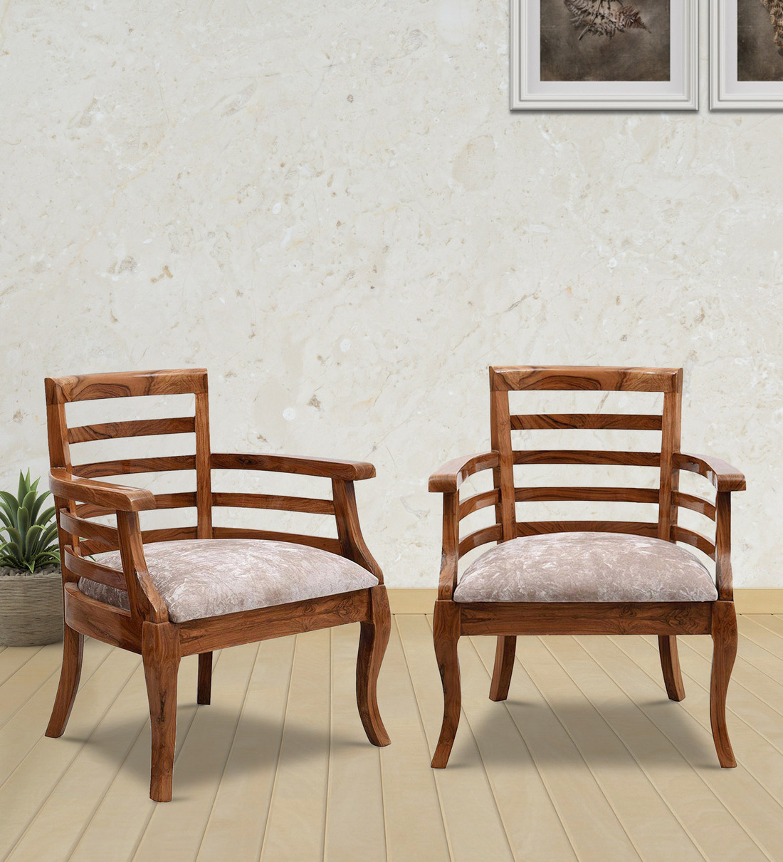 Armchairs as the name suggests, comes with arms and a straight upright back. They can either be minimalist as in the bare wooden ones or the upholstered ones.
