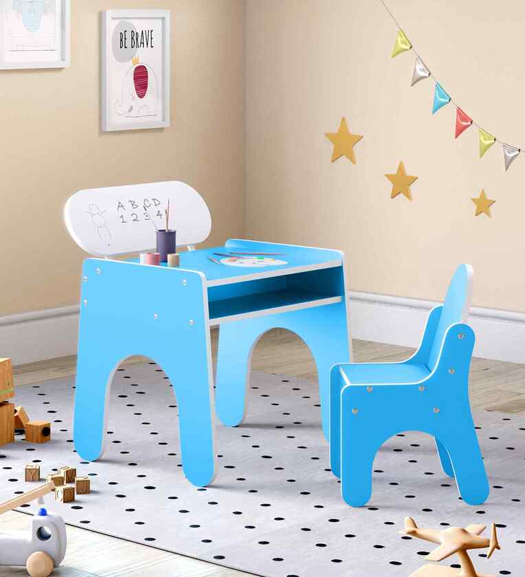 Looking for a perfect study desk and chair set for your growing toddler? Look no further than the Alex Daisy TOM Study Desk and Chair Set. This classic combo is designed to provide young learners with a comfortable place to study, play, and create while also offering learning opportunities. The desk has a storage compartment for keeping writing supplies and accessories. It also has a reversible whiteboard and green chalkboard for your child s endless creativity. To add more, white board marker, duster and chalks come free. The desktop stands at 21 and is designed to be the perfect height for young kids, giving them easy access to all kinds of hands-on activities. This easy-to-assemble study desk and chair combo is built to last and will offer strength, compact size, and hard-wearing performance for many years of enjoyment. At Alex Daisy, we aim to make safe and high-quality children's furniture affordable for all families. We understand that safety is the most important factor when it comes to your child's space. That's why all Alex Daisy children's products are made with long-lasting materials to ensure they can withstand years of jumping and playing, instilling resilience and durability. Additionally, they are rigorously tested to meet or exceed all industry safety standards, providing peace of mind for parents. The product's surface is scratch-resistant PVC lamination in everlasting colours, and there is no paint used in the product's construction, promoting sustainability and eco-friendliness. A STURDY SOLUTION FOR AT-HOME LEARNING: Give your young student the best chances for academic success with a dedicated workstation designed for studying, writing, drawing, computing, playing & more. Recommended for Boys & Girls Aged 3 to 12 years. DRAWING BOARD: It also has a reversible whiteboard and green chalkboard for your child s endless creativity. To add more, whiteboard markers, a duster, and chalk come FREE. BIG SPACE: Teach your child to keep their room neat, clean, and organized with the desk's built-in storage. The desk compartment is perfect for concealing pens, pencils, markers, crayons, and erasers. The spacious workstation provides plenty of room for a tablet, laptop, colouring book, puzzle, game, or toy. EXTREMELY SAFE: We know chemicals have no place in your kid's space, so we have used no paint on the product. The product's surface is a scratch-resistant PVC lamination in everlasting colours. There are no sharp edges and all the corners have been rounded. IDEAL SIZE: The desktop height is 21 inches and features a large work surface, making it the perfect place for young kids to develop their fine motor skills as they draw, paint, and write. DURABLE: Made of strong engineered wood with scratch-resistant PVC lamination. The joinery is steel Allen bolts, so there is no chance of parts getting loose. Moreover, the chair comes with plastic buffers to prevent any scratches on your floor and make it easy to move around. Quality-engineered wood boosts the bearing capacity, giving kids a stable surface to work as they grow. QUICK SERVICE SUPPORT: This is a DIY (Do It Yourself) product. It comes with an instruction booklet on how to assemble the table and chair, as well as a video link for visual assistance. Alternatively, if you require a technician to assemble it, you can contact Alex Daisy's service support for a fee. Alex Daisy's service support can be connected via WhatsApp at 98739-92500. We are always happy to help you.