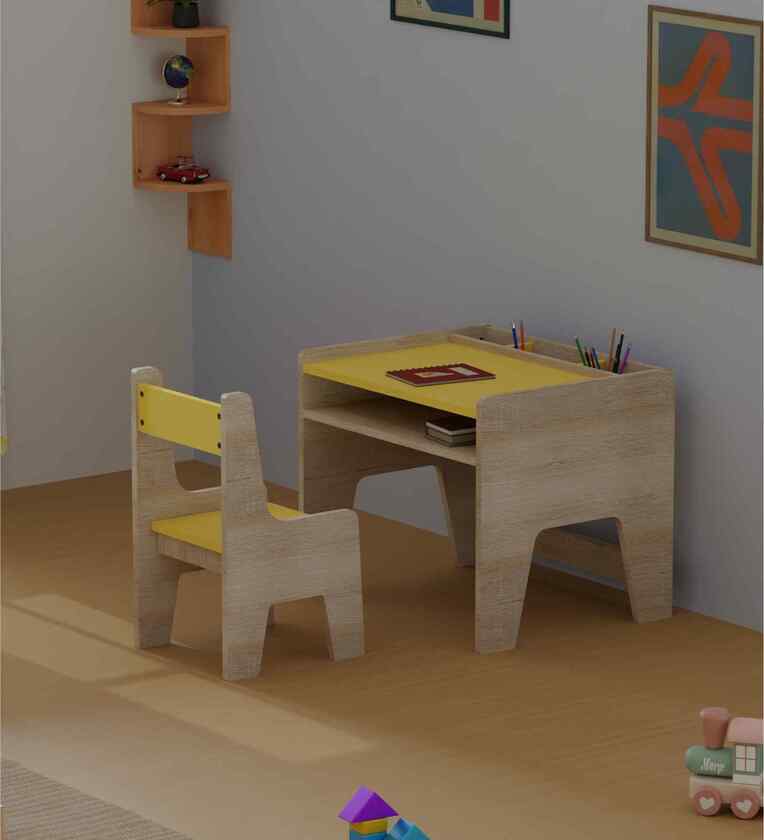 STURDY KIDS STUDY DESK & CHAIR SET Durable study table for kids designed for reading, writing, drawing, homework, online classes, and play. Includes desk + chair combo, tabletop organizer, and backpack hanging knob. Ideal study furniture for boys & girls ages 2 8. STORAGE & WORKSPACE Kids desk with built-in storage compartment for pens, pencils, crayons, markers, erasers and school supplies. Spacious under table storage fits colouring books, puzzles, toys, craft items, tablets or even a laptop. Side knob allows easy school bag hanging. SAFE & NON-TOXIC MATERIALS No paint, no harmful chemicals. Scratch-resistant PVC laminated surface in long-lasting colours. Rounded corners for child safety; no sharp edges. PERFECT SIZE FOR GROWING KIDS 20-inch desk height designed for comfort and posture support. Large, ergonomic work surface helps children develop fine motor skills while they draw, write, paint, or study. HEAVY-DUTY & LONG-LASTING Made from high-strength HDF engineered wood with scratch-resistant PVC lamination. No screw joinery joinery ensures sturdy construction and prevents loosening. Chair includes floor-safe plastic buffers to avoid scratches and allow smooth movement. High load-bearing capacity of 70Kgs for growing children. DIY ASSEMBLY + SUPPORT Comes with step-by-step assembly manual and video guide. Need assistance? You can contact Boingg! Service Support on 011-41170803