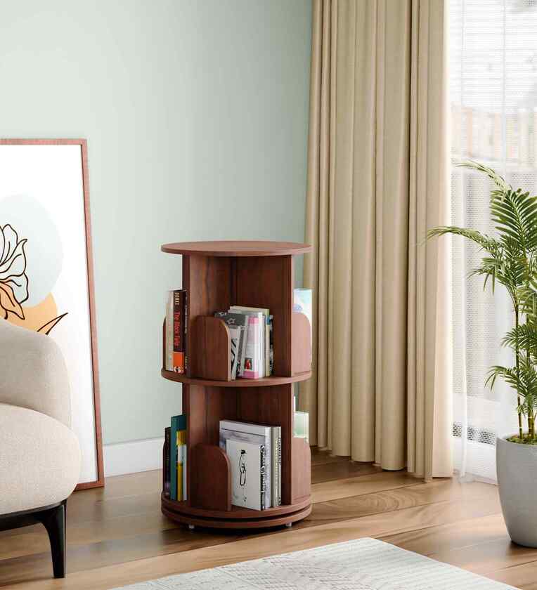 Tornado 360 Rotating 2-Tier Bookshelf In Brown In Brown finish