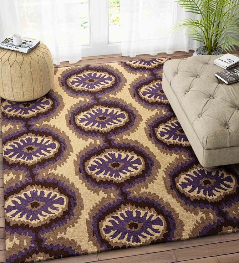 Beige Wool Geometrical 5 x 8 Feet Hand Tufted Carpet