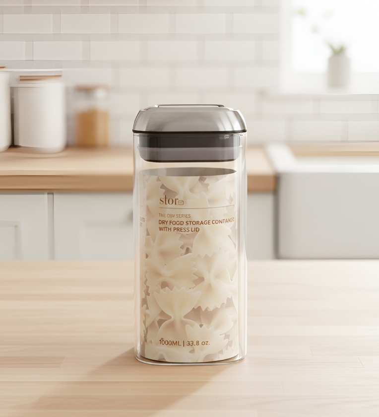 Transparent 1000 ml Borosilicate Glass Storage Container with Airtight Stainless Steel Press Lid