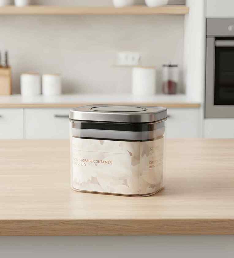 Transparent 480 ml Borosilicate Glass Storage Container with Airtight Stainless Steel Press Lid