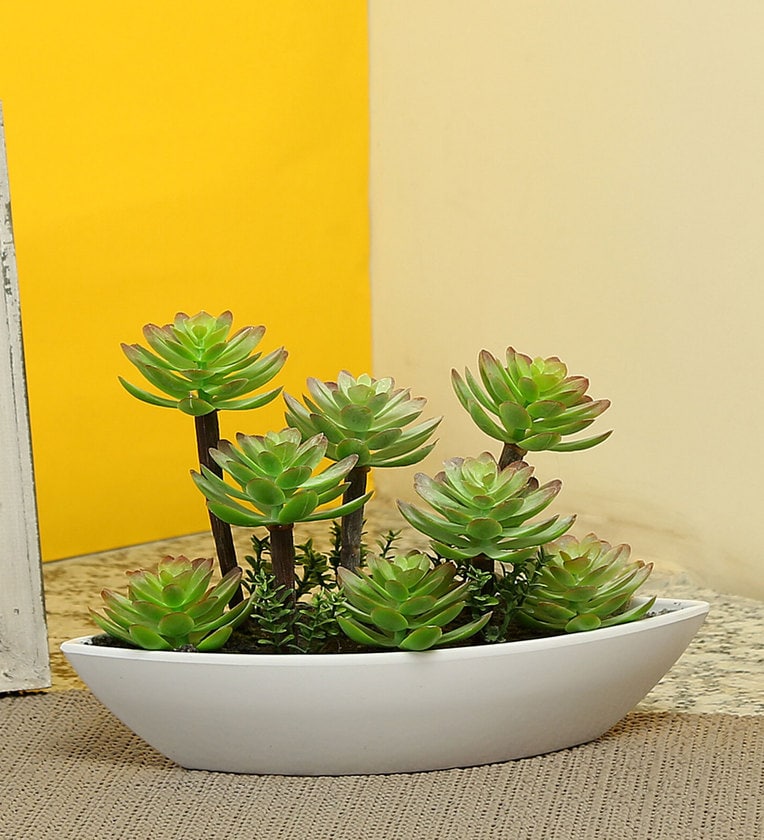 Green & White Abs Plastic Artificial Plant with Pot
