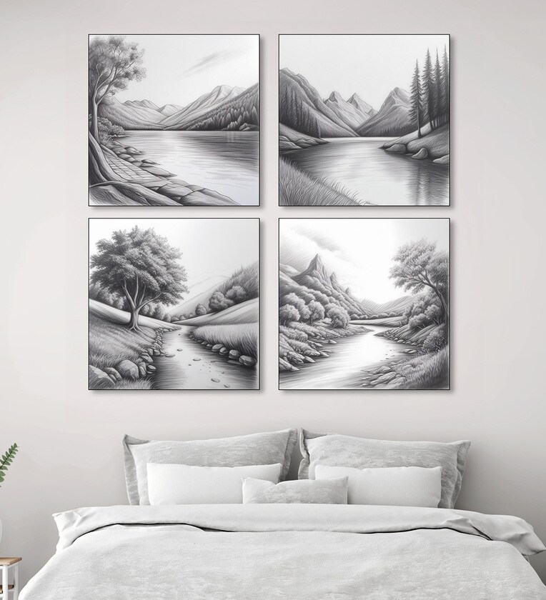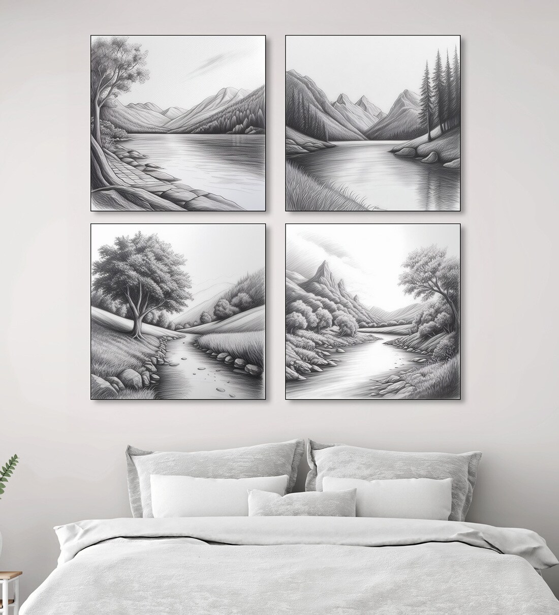 Tree Art Set of 4 Canvas Printed Wall Painting Black Frame