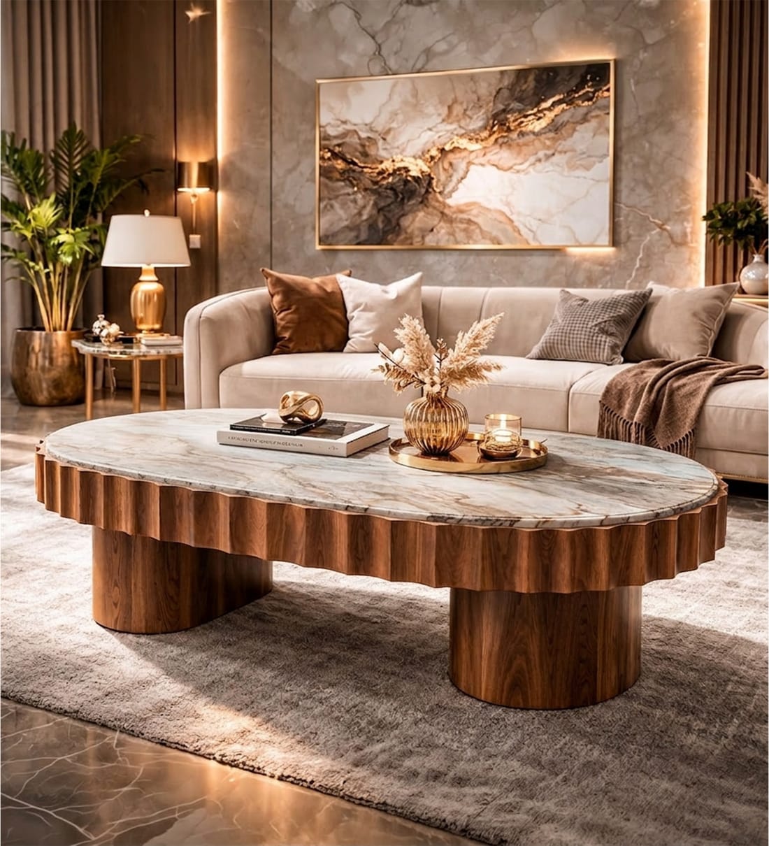 The Triest Coffee Table is inspired by classical French architecture, featuring fluted details on the tabletop that bring a touch of timeless craftsmanship, combining beauty with practicality. While the table is robustly built, it is ideal to complement contemporary living spaces, providing a warm and sophisticated appearance that seamlessly enhances any interior.