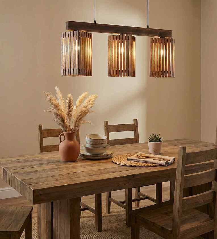 Trikona 3 Lights Brown Solid Wood Linear Chandelier Cluster Hanging Light