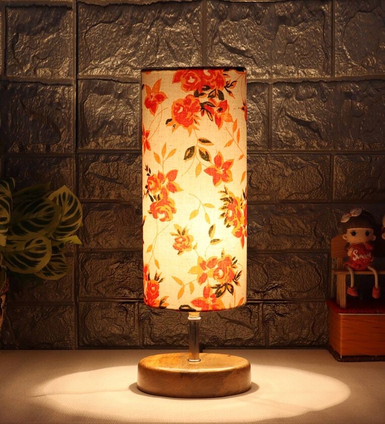 Troika Multicolour Cottan Fabric Shade Table Lamp With Wood Base