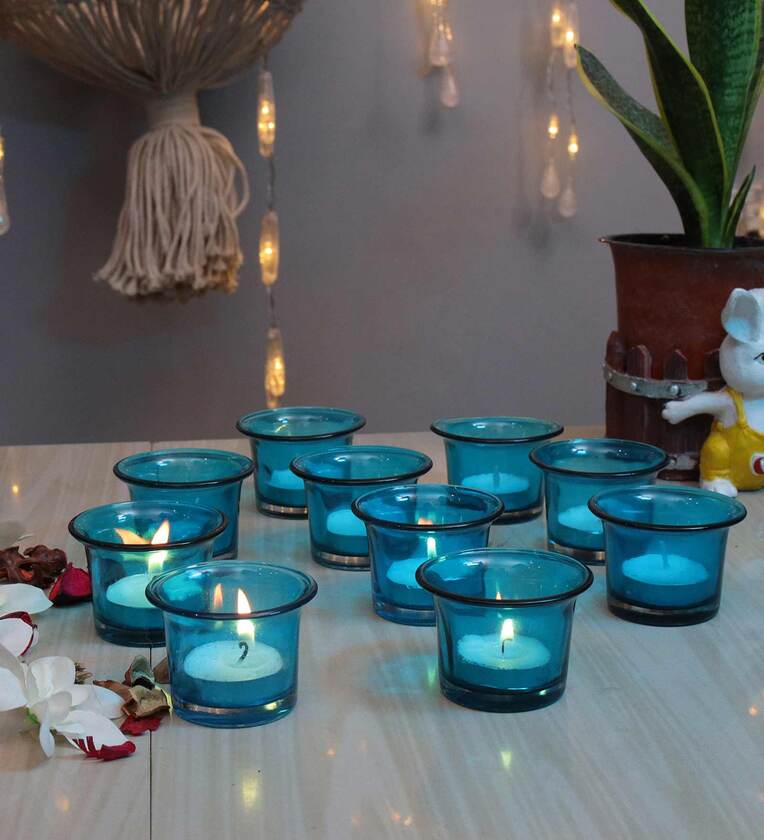 Euphoria Blue Glass Table Tea Light Holders & Votives (Pack Of 10)