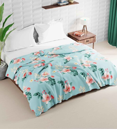Turquoise Polyester 150 Mild Winter Double Bed Comforter