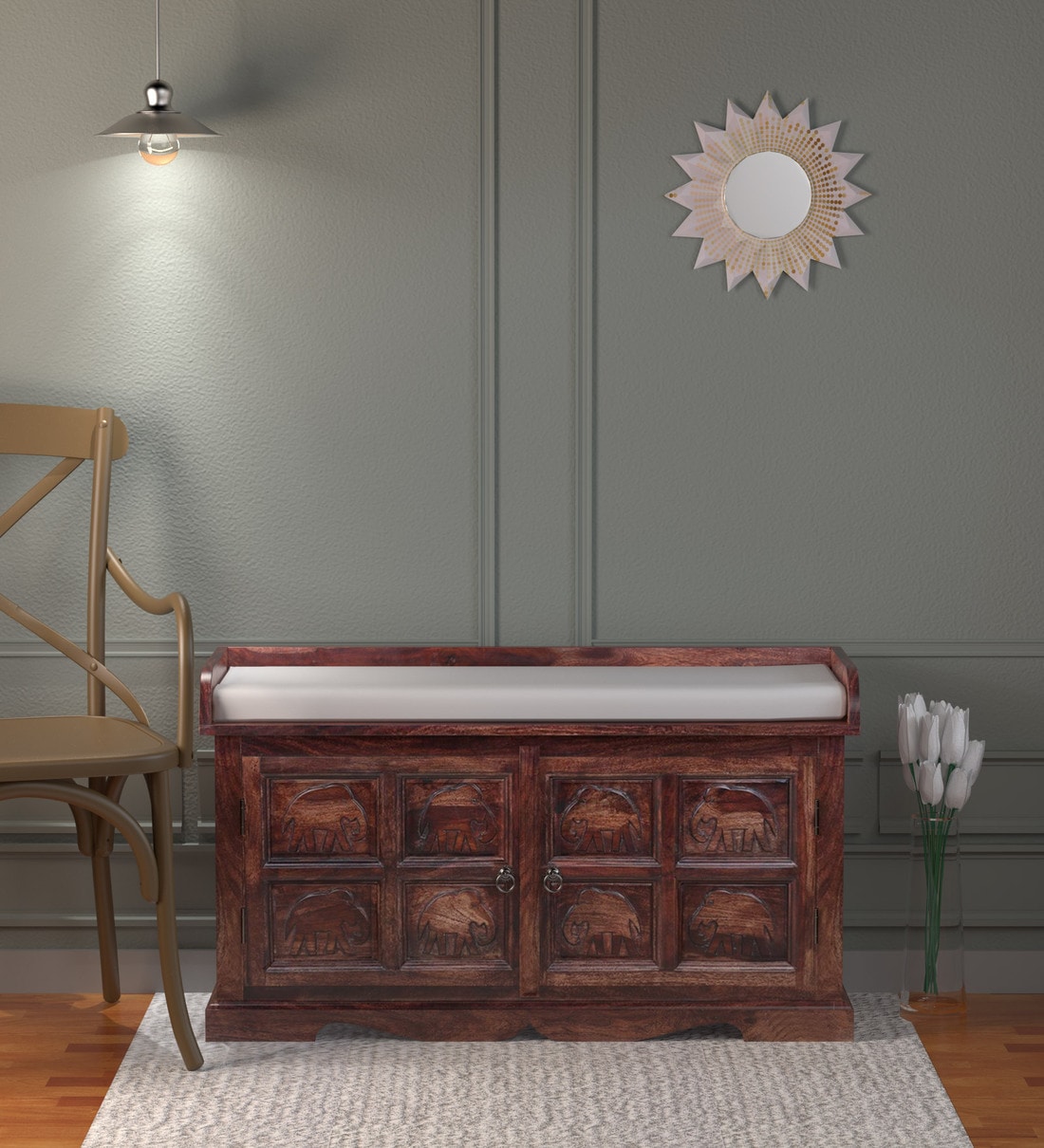 Tuskar Sheesham Wood Shoe Rack with Seating in Walnut Finish