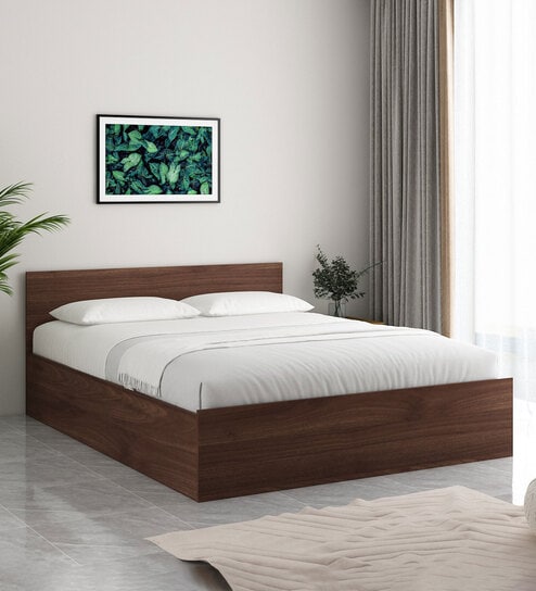 Ultramax Wood King Size Bed in Columbian Walnut and Frosty White Finish with Box Storage
