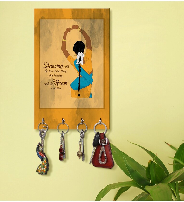 Dancing Lady Yellow MDF 4 Hooks Key Holder