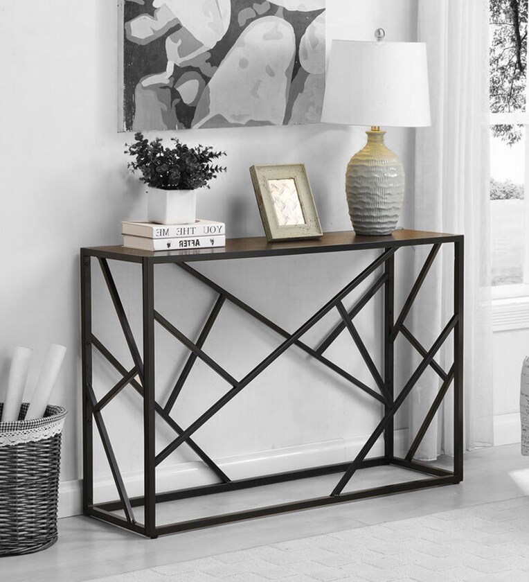 A Console Table is wide, shallow and roughly as tall as a regular table or desk which sits up against a wall. The average console table height is 30 inches, though designs can range anywhere from 28 inches to 32 inches in height.
