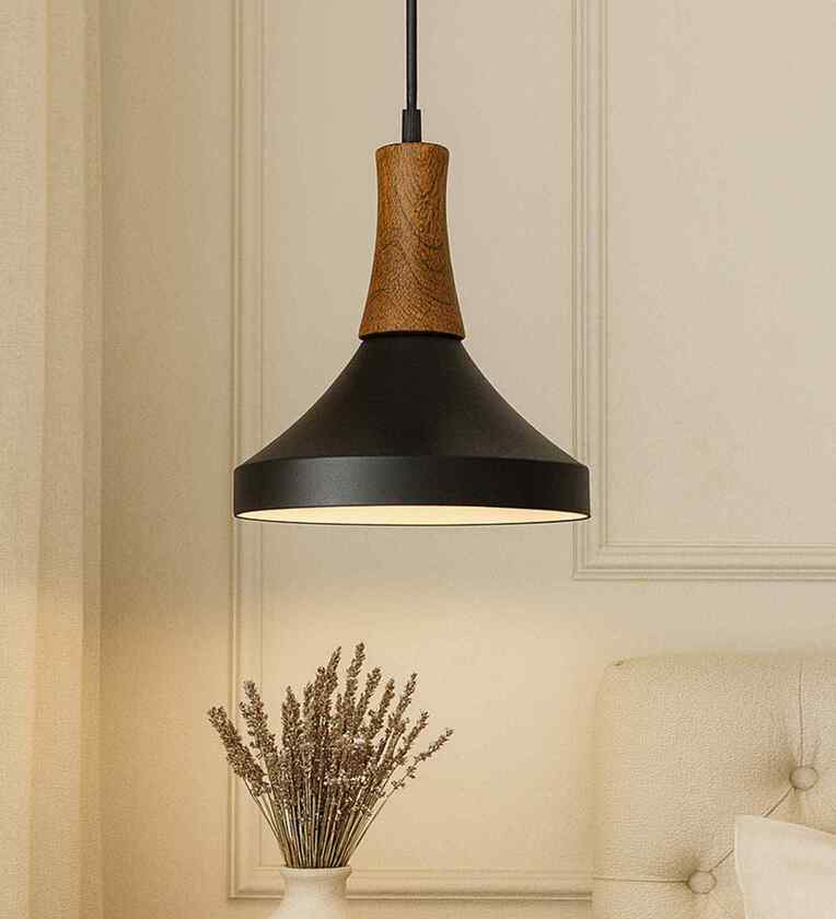 Vanora Wooden Top Black Pendant Light