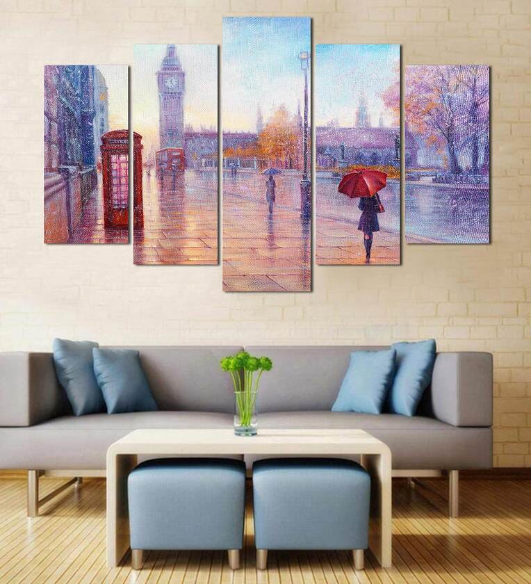 Velvet Laminated Beautiful Street View Set of 5 Wall Art Panels