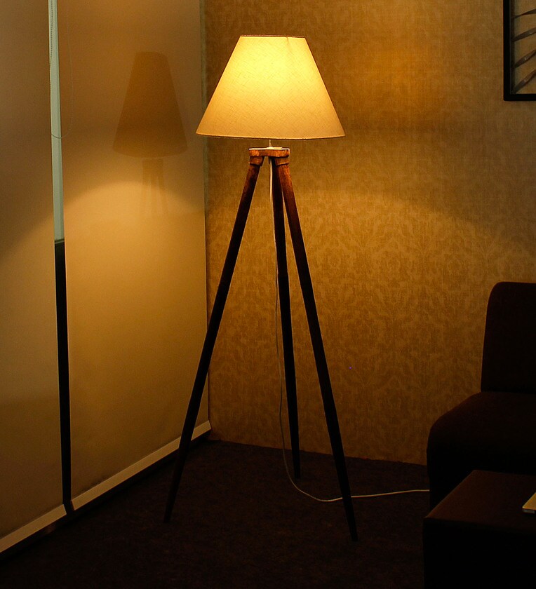 Ventus Off White Fabric Shade Tripod Floor Lamp With Mango wood Base