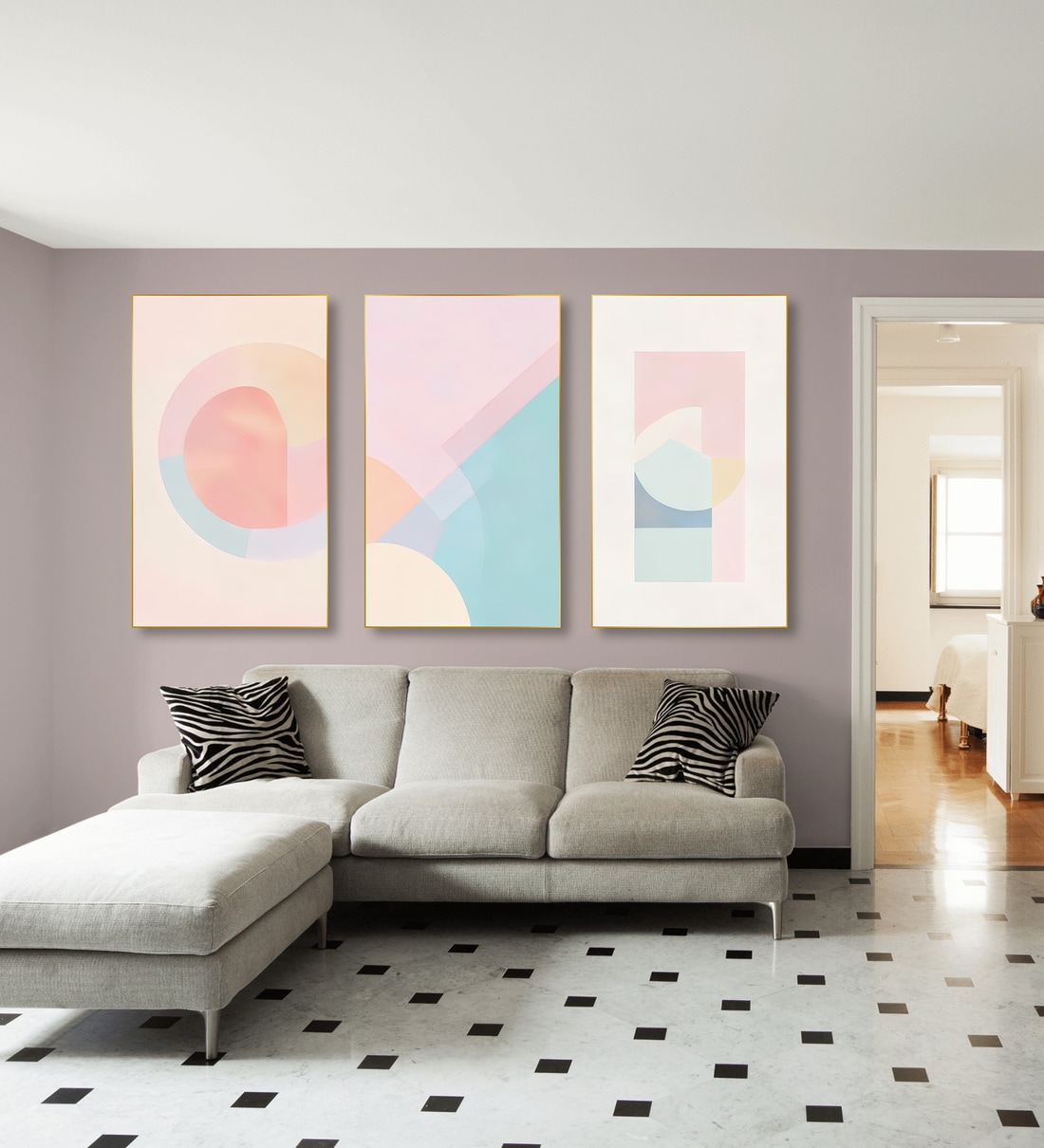 Vibrant Abstract Wall Art Set of 3 Canvas Wall Painting Gold Frame