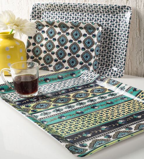 Multicolour Vibrant Melamine (Set of 3) Serving Tray Set