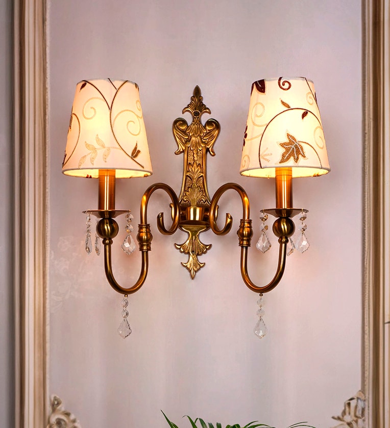 Victoria Antique Brass Double Wall Sconce with White Kashmiri Embroidered Shades
