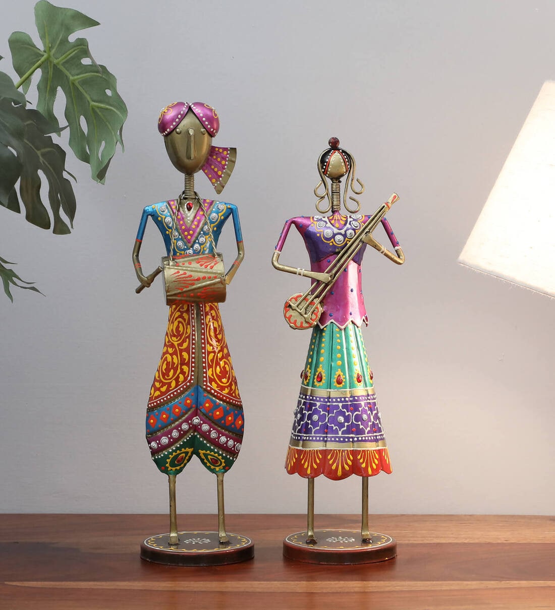 Rajasthani Ethnic/ VILLGERS DOLL S/2 with FINE PAINTING TABLE DCOR Handcrafted Powder Coated Iron TABLE DECOR Decorative (Multicolor)