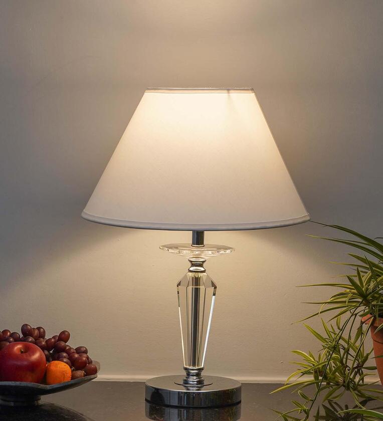 The VISO Table Lamp combines modern elegance with timeless charm, making it a perfect addition to any interior. Featuring a sleek chrome finish metal base paired with sparkling clear crystal glass accents, this lamp reflects sophistication and style. The crisp white cotton shade softens the light, creating a warm and inviting ambiance ideal for both relaxation and focus. Perfect for bedrooms, living rooms, or workspaces, the VISO lamp is more than just a lighting fixture it s a refined d cor statement. Its versatile design complements both contemporary and traditional interiors with ease.