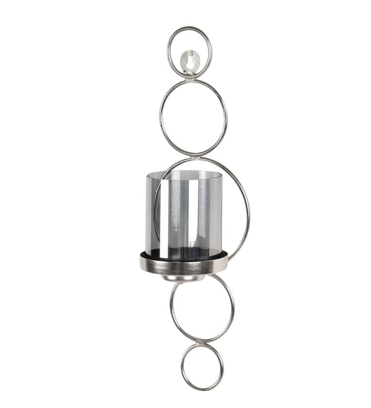 Light up your wall with this elegant metal and glass wall sconce. Your space will be enhanced by its powder-coated finish, which provides a long-lasting finish. Features: Material: Iron, Glass Finish: Nickel, Smokey Glass Dimensions in inches : (L x W x H) 5x4.8x16.1 inches Sold as Single piece Care instruction: Clean with dry cloth *Products are handcrafted; there could be slight variation in the product from the image.