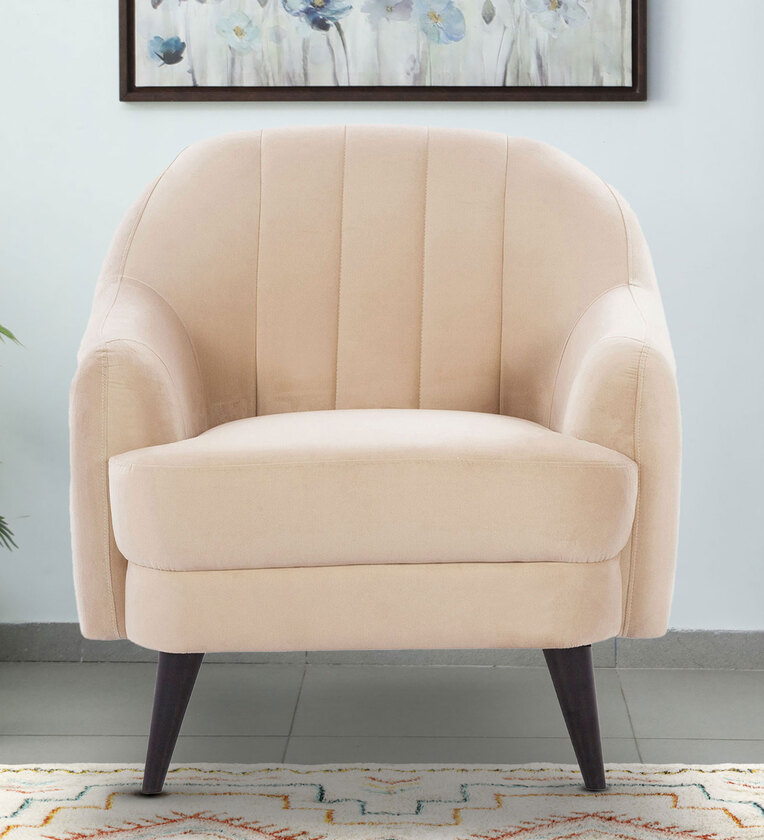Warwick Velvet Fabric 1 Seater Sofa in Beige Colour