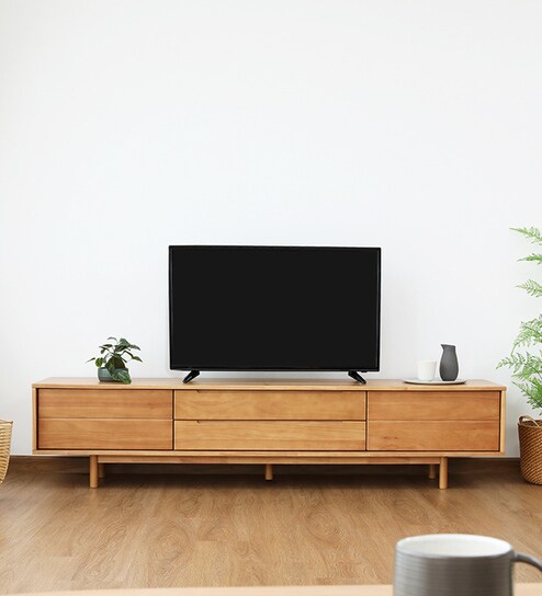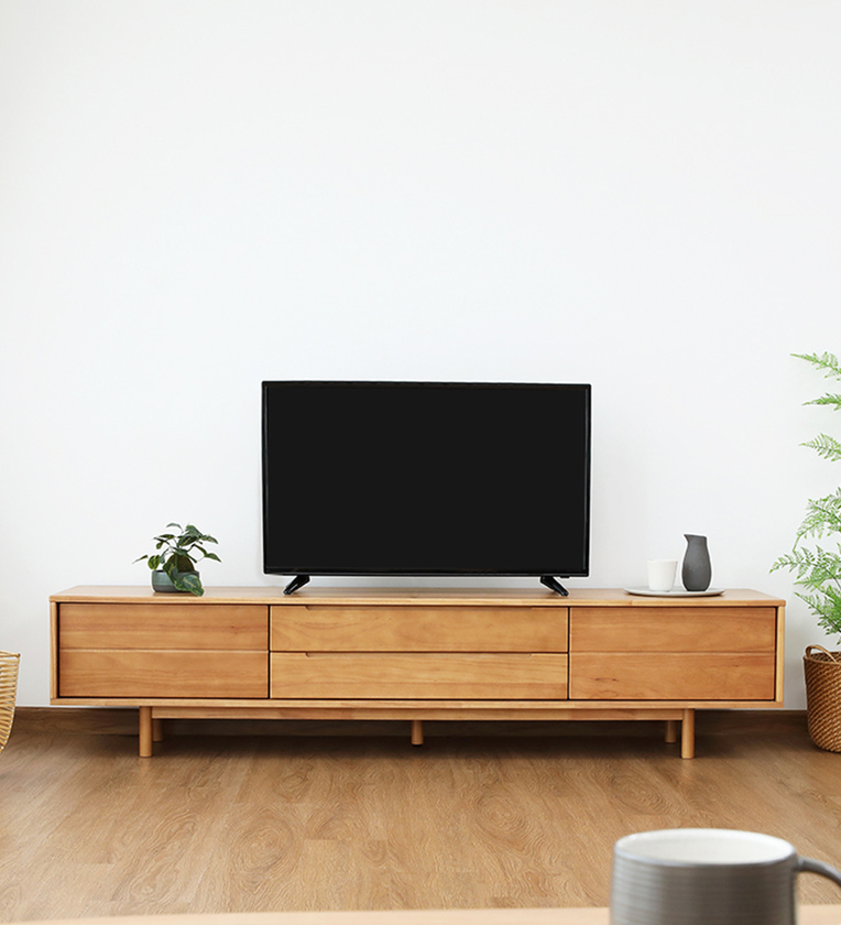WASABI TV Cabinet 200cm.-Solid rubberwood Enhance your living area with this large TV cabinet. Suitable for any room, this is the ideal solution for neatly arranging all of your media essentials. Made with a combination of real solid rubberwood, protective paper foil and particleboard, this attractive cabinet is built to last. -There are 2 doors, left and right, 2 drawers in the middle, able to store a variety of things. and dust-free as well - Solid rubberwood exterior with solid wood adjustable shelving. - Solid rubberwood legs with middle leg for better support. - Soft close hinges for silent closing. - Suitable for TV screens up to 32""and accommodates TV sizes up to 75 with a center stand. - Clear coating retains a natural look with added durability. - Natural wood displays different color and patterns in each piece. - Combines perfectly with other furniture in the WASABI series.