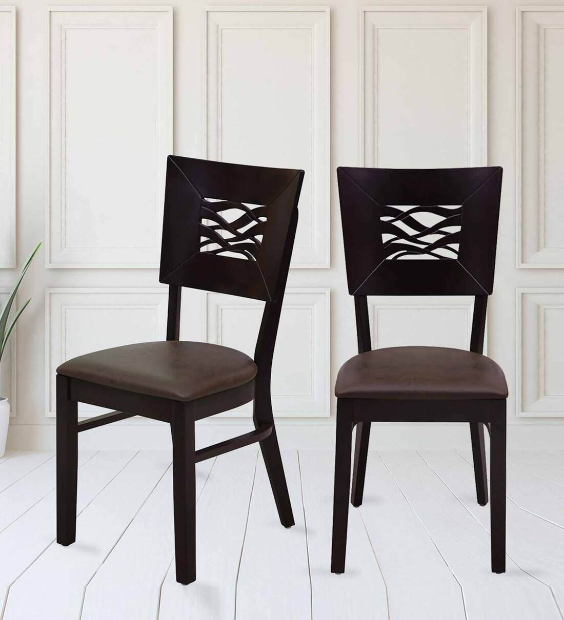 Waves Solid Wood Dining Chair In ErBrown Colour (Set Of 2)