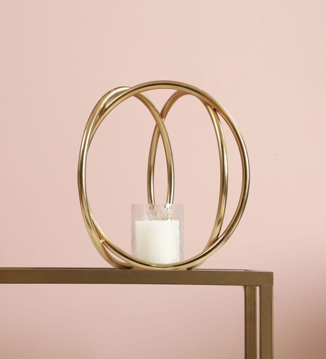 Make a design statement with the flowy organic design of this pillar candle holder. Perfect accent to be added as a centerpiece or as an elegant table accent It fits a 3 inch pillar candle. Product Details: Size: 8.8x8.8x8.8inches (LxWxH) Material: Iron, Glass Color: Gold Care Instructions: Wipe With a Clean and Dry Cloth Do Not Use Water or Any Chemicals to Clean. *Products are handcrafted and each product is unique; there could be slight variation in the product from the image. Candles are not part of the product
