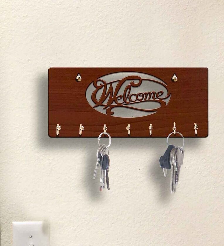 Welcome Brown Engineered Wood 7 Hooks Key Holder