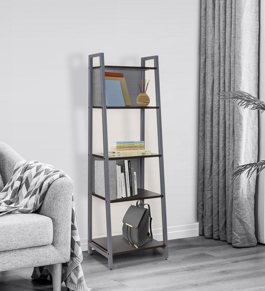 Book Shelf is a free standing furniture unit with multiple horizontal stack of racks or shelves which are used for varied purposes to store your books or display curios. Some have a back panel or could be open from both sides.