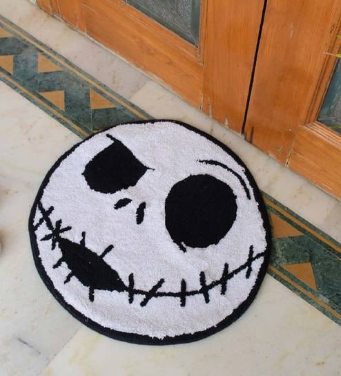 White Abstract Cotton 22x23 Inches AntiSkid Bath Mat