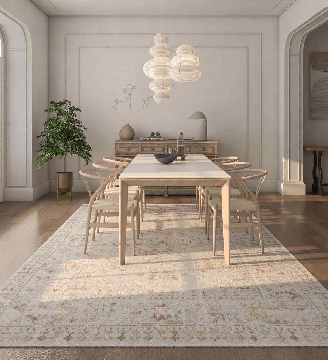 Bright saffron tones meet a white base in this Oriental rug that feels vibrant yet balanced. Its pattern combines tradition with a fresh palette.