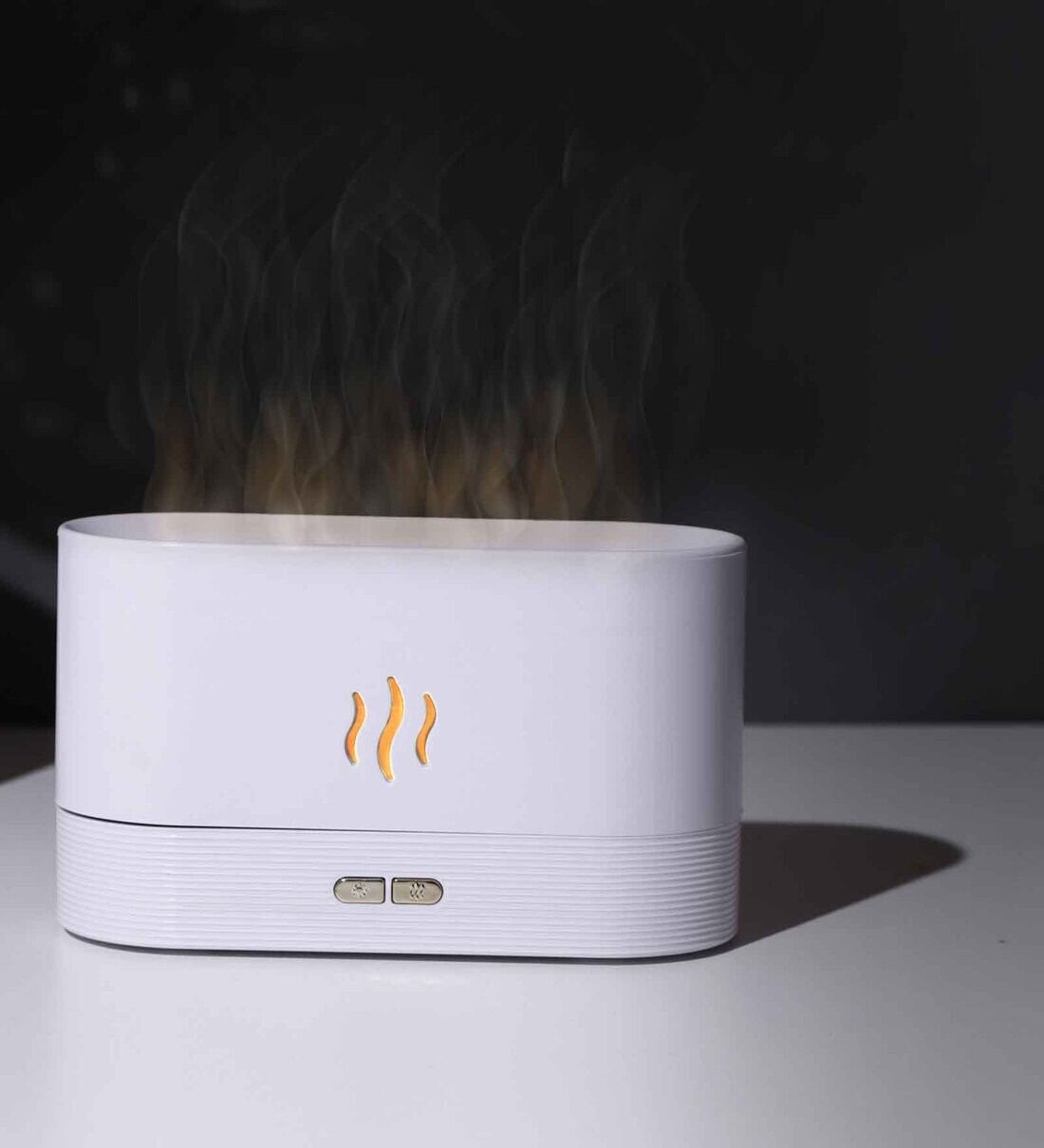 White Aromahpure Electric Humidifier with Flames Effect Essential Oil Aroma Diffuser for Home 180 ML