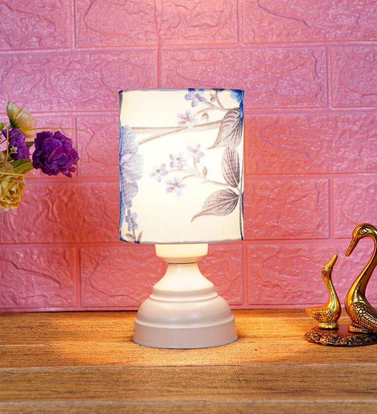 White & Blue Shade Table Lamp With Metal Base