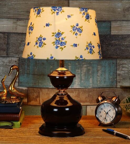 White & Blue Shade Table Lamp With Metal Base